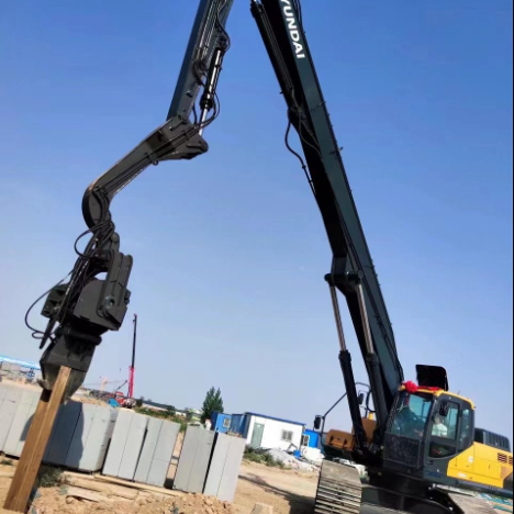 Le bélier hydraulique de vibration profitent de vibration à haute fréquence produit par le moteur et transitent la force de vibration au bélier hydraulique de vibration pour le sol environnant liquéfiant et casser sa structure pour réduire le frottement ; alors empilant ou forant la forme de pile l'au sol de sol par l'intermédiaire de l'excavatrice. La vibration à haute fréquence est conduite par le moteur hydraulique de l'excavatrice.